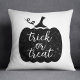 Firar Halloween i i stil med denna "bus eller godis" säsong dekorativ kudde som har ett modernt skript på en svart, rustisk texturerad pumpa.