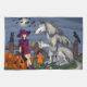 En häxa och en varulv njuter av sitt Bus eller godis-godis på en coola Halloweenkväll.