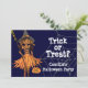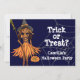 Roligt tjejer Halloween fest inbjudan. Med en söt mörk flicka klädd som en söt häxa med en pumpa och en pjäs. Anpassa med ditt namn, uppgifter om party, adress och OSA. En unik designad illustration och design från Sarah Trett för www.mylittleeden.com