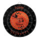 Ett Halloween-tema som ser ord Bus eller godis mot orangens måne bakgrund. Ett svart silhuetthuvud av ett Witch med en svart hatt med spindlar fäst på Trick 'T'. Witch omges av tre (3) fladdermöss som flyger i svart silhuett. Den svarta silhuetten från ett sovande fladdermus hänger från brev k i ord Trick. Under ord ljuger "Behandlingen" två (2) lollips och tre (3) sötsaker (candies or lollies) i svart silhuett. Perfekt för det eländiga i oss alla och för att fira Halloween-traditionen. Med den här designen kan du anpassa texten "Happy halloween" till dina behov.