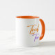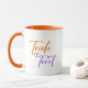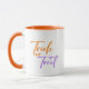 Redo för Halloween! Bus eller godis Modern Script Halloween Mugg-design har "Tick eller Treat" i det moderna skriptet orange och lila. Tittar för modern och minimal stil mugg för dina vänner och din familj, här vad du är tittar för! Njut av din eländiga Halloween