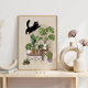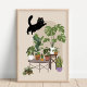 En lekfull och genomtänkt design som fångar den vackra kaos som bara en svart kattägare verkligen förstår. Illustrationen visar en elegant "huspanter" mitt i en zoomie, svävande över en utvald inomhusdjungel av Monstera, Fiddle Leaf Figs och ormbunksväxter.