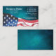 business card with American flag across bottom. Editable text and the background color can be changed.