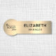 Modern namn bricka med din logotyp på en guld-komplex metallisk bakgrund. Lägg till en namn och titel i enkel typografi.