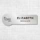 Modern silver faux metallic namn bricka med företagets eller organisationens logotyp. Lägg till en namn och titel i enkel typografi.