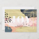 Den här snyggten och det moderna "JOY"-julkortet har abstrakt borshstroke mönster i faux guld-folie, marinblått, svart och rosa i ljus rosa bakgrund. Baksidan har ljus rosa bakgrund. Anpassa den efter dina behov.