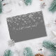 Business holiday snöflingor presentkort med fallande snöflingor på en silvergrå bakgrund med elegant vit text. Lägg till dina erbjudandedetaljer på baksidan. Perfekt för spa, make up-artister, skönhetsterapeuter, wellnesscenter, stylister, butik, nagelsalonger, frisör och skönhetssalonger med mera