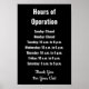 Business Hours of Operation Black & White Template Poster