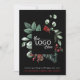 Elegantens svarta Julhälsningar kort för företag under julhelgen med din logotyp som är framtagen av en naturinspirerad vattenfärg av en röd kardinal och vintergrej i säsong. Anpassa din jul hälsning och ditt företag namn i ren röd och vit typografi.
