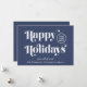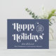 Julkort för företag för kunder, anställda, filialer etc., med "Glad helg" skrivet i snyggtens vita serif-typografi mot blå bakgrund. Lägg till logotyp och säsong hälsning (tack, från oss alla osv.) och företag namn. På baksidan anger du en skannerbar QR-kod för webbplatsen adress.