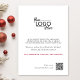 Julkort i eleganten Julhälsningar din logotyp med en vattenfärg av en röd kardinal och säsong vintergrej. Anpassa ditt hälsning och ditt namn i röd och vit typografi. På baksidan lägger du till ytterligare ett meddelande om kunduppskattning och matar in din webbplats adress för att skapa en skannerbar QR-kod.
