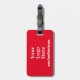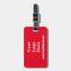 En bild av visningen finns på en ljusröd bagagetapp. Du kan ersätta bilden med företagets logotyp eller en annan bild. En textrad med visning är nedanför bilden. Du kan redigera texten för att visa ett anpassningsbar-meddelande. Texten är vit.