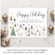 Minimalt modernt helgdag-kort för ditt företag med abstrakter som illustrerar grönt, terracotta och guld Julgranar och stjärnor, "Glad helg" i ett snyggt-skript och din hälsning och ditt företag namn i enkel typografi.