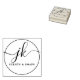 Business Monogram Script Logotyp Namn Rubber Frimärke. Elegant business gummi frimärke med en monogram initialer-logotyp i kalligrafiskript för finare med dekortecken och anpassningsbar. ÄNDRINGAR: Ändra ett textteckensnitt stil, färg, storlekt, avstånd och placering i REDIT. Om du vill kan du välja ett färg på bläck-plattan på beställningssidan. ASSISTANS: Om du vill ha hjälp med designändringar eller om du vill koordinera objekt kontaktar du designern INNAN ORDERING via fliken Zazzle Chatta MESSAGE eller e-postmeddelandet makeitaboutyoustore@gmail.com.