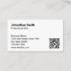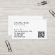 Det här vita affärskortet innehåller svart text som du kan redigera för att visa information om dig och ditt företag. Det finns linjer för ditt namn, professionellens befattning, namn, adress, mobilt nummer och webbplats. All text kan redigeras eller tas bort. Det finns en mall för QR-koden. (Kom ihåg att ange webbplatsens URL för att QR-koden ska fungera korrekt.)