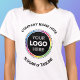 Give your team a professional look with this simple yet stylish custom branded business t-shirt. An ideal promotional tool for small businesses, this shirt features a logo prominently placed on the front the shirt, with optional curved text areas above and below. Upload your company’s logo, add contact details, a slogan or message, and select a shirt color that matches your brand identity. Our modern template makes it quick and easy to create your own branded t-shirts for staff uniforms or promotional apparel. Click ‘Personalize’ to get started!