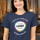 Give your team a professional look with this simple yet stylish custom branded business t-shirt. An ideal promotional tool for small businesses, this shirt features a logo prominently placed on the front the shirt, with optional curved text areas above and below. Upload your company’s logo, add contact details, a slogan or message, and select a shirt color that matches your brand identity. Our modern template makes it quick and easy to create your own branded t-shirts for staff uniforms or promotional apparel. Click ‘Personalize’ to get started!