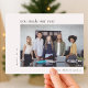 En snyggt modern företagslag Julhälsningar ett platt bildkort med ett fet typografiskt citat "du gjort vårt år" i svart på en minimalistisk vit bakgrund. Hälsning, år och företag namn kan enkelt anpassas till kostym i ditt eget företag. Utformningen innehåller ett valfritt meddelande till dina kunder på andra sidan för att tacka dem för deras verksamhet och lojalitet och önska dem fred, välstånd och glädje i julhelgen. Ett trendig, en roligt och en professionell för att visa ut den här julhelgen! Bilden som visas är endast avsedd som illustration för att ersättas med ditt eget team porträtt eller annat foto. Platshållarbilden består av ett team på fem som ställer upp i ett trendig stadsområde.