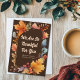 Vi är så tacksamma för era kort. Ett vackert mörk brunt Thanksgiving för ett företag att skicka sin tacksamhet till kunderna under julhelgen. Anpassa till ditt företag namn inuti orange lövs vattenfärgsfallsfolie. Anpassningsbar på baksidan för hösten marknadsföring.