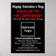Lycklig Alla hjärtans dag! En underbar helgdag att fira i februari och att också marknadsföra ditt företag eller att marknadsföra ditt varumärke namn. Anpassadet poster med Valentine Sale, ditt företag namn och annan information. Poster att du kan använda använda som marknadsföring-material för att locka fler kunder. Anpassa den och visning den för att övertyga fler kunder om att köpa dina produkter eller kunder som gillar dina tjänster i Valentine-helgdag. Design färg är röd och vit text på svart bakgrund. Innehåll är Lycklig Alla hjärtans dag hälsning, försäljningstexter med procentuell rabatt som du kommer att erbjuda, sälja data, ditt företag namn, logotyp, adress, mobilt nummer, e-post och webbplats eller din social-mediesida. Kontrollera utseendet när du har laddat upp logotyp och skrivit in text. Om utseendet passar dig kan du ställe din beställning nu. Om du behöver ändra storlek på och flytta logotypen och texterna så att de passar på den här poster eller på den storlek och form som du vill välja, ska du ändra verktyg i designen. Du kan också göra andra ändringar i designen verktyg beroende på hur det här poster ut som du föredrar, t.ex. ändra bakgrunden färg, teckensnittet färg och teckensnittet stil. Lycklig Alla hjärtans dag! Önskar mer försäljning den här helgdag.