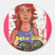 visar en söt flicka som leker en färggranat gitarr och en "busker-tjej"-slogan (gatuutförare)!