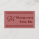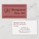 Monogram och namn/företag mellan två kursiva grafiklinjer. Bakgrunden i ljusa burguny färg, Text är mörk burgundi. På baksidan, anpassa dig till namn, rubrik, adress, kontaktinformation.