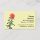 En ensam rosenblomma på en bladrik stjälk stiger upp från det nedre vänstra hörnet. Placerad på en blekgul bakgrund. Personalisera med affärsinformation på trappstegslinjer till höger och kontaktinformation längst ner.