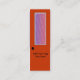 Röd dörr med svart dörrknapp och glasruta. Anpassa kortets framsida med ett eget foto bakom glaset i dörren. Lägg sedan till en lämplig kampanjrad under. Byt till Business namn, adress och kontaktnummer på baksidan.