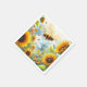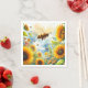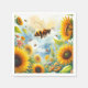 En omsorgsfull honungsbin som ligger ovanför en trädgård av guldblommor av gult, tillsammans med andra små bin i en buzz av aktivitet. Scenen ställs in mot en vattenfärgsbakgrund i himmel, vilket förbättrar charmen för detta pappra tallrikar.