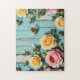 Busy Bees with Pink and Yellow Roses on Old Fence Pussel