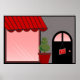 Butik fasad Röd Svart Topiary Öppen Poster