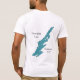 A pair of loons on the lake with a sunset in behind the and cattails on either side of them. On the back is a map of Butterfield Lake Redwood N.Y.