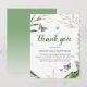 En underbar elegant tackkort att skicka ut till vänner och familj, som har visat dig kärlek, vänlighet och stöd under din sorgetid. Med luxuariös grönt bladning med faux guld-accenter och stunny blå fjärilar på en klassisk vit bakgrund. All text kan vara personlig.