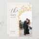 En elegant, boho-båge som är inramad av vismiska guld-fjärilar (digital effekt, inte äkta folie) är inställningen för detta moderna klassiska foto bröllop spara datum som är romantiskt och snyggt, lyxiskt men enkelt och klassligt. Perfekt för den romantiska moderna bruden som kärlek boho minimalistiskt med en liten aning guld. Och fjärilar.