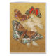 Söt guld bakgrund med blommönster och trio fjärilar ovanför blommor. Anpassa inuti text.