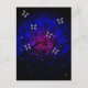 Vackra fjärilar flyger och dansar mellan gräs och flugor in i natten himmel på ett fantastiskt vykort