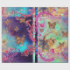 Whimiscal, bright rosa, Red fuchsia blomstrar, turkosblått, grönt färg, blommar och blommor i Vår. Ursprunglig vattenfärgsmålning med guld och silver folie av Bulgan Lumini (c)..Vackert för möhippor, söta 16 födelsedagar, julHelgdagar, party, förlovning-duschar, årsdagar eller vad som helst!
