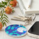 Nyckelkedja i en flock av fjärilar och myter mot en djup blå natt himlar, belyst av en fullt måne