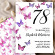 Butterfly 78:e födelsedagsinbjudan till Rosa/Lila Inbjudningar