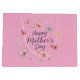 Happy Mother's Day Large Gift Bag with floral and butterfly pattern on a plain pink background.