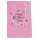 Happy Mother's Day medium gift bag with floral and butterfly pattern on a plain pink background.
