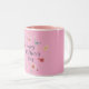 Happy Mother's Day two tone coffee mug with floral and butterfly pattern on a plain pink background.