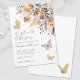 En livstid för Butterflies Inbjudningskort för möhippan firar den brud som ska vara med den här fantastiska och nyskapande designen, perfekt för en "Butterflies livslängd"-möhippa. Längst upp i inbjudan visas frasen "A life time of Butterflies", men den kan anpassas eller tas bort för att få mer personlig. Utformningen har en känslig arrangemang av vildblommor med vattenfärg i en varm och modern blandning av gult, orange, solbränna, rosa och svart. Den skapar ett mjukt utseende och bjuder in höstinspirerat utseende. Butterflugor i mjuk gult och grått-toner fladdrar lätt över framsidan och tillsätter en subtil och magisk beröring. På baksidan bär ett enda fjärilstecken temat genom med en sammanhängande avsluta. Texten är formaterad i en kombination av handskrivet skript och klassiskt serif typsnitt, som ger ett rent utseende, elegant och contemporary. Perfekt för höst- eller höst-möhippor, oavsett om du är värd inomhus eller utomhus, så ger den här inbjudan en söt, säsong-charm till firande. Helt anpassade kan du justera färg, typsnitt och formuleringar så att de stämmer överens med stil. Tillgänglig som utskrivet kort eller hämtningsbar digital fil.