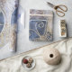 eleganten i möhippa i Bröllop avbesöker vitplanspärlor av rosa i guld och avger utskrift av papprare rullning. Vintage struktur presentemballering. Bilcopyright Marg Seregelyi Fotografi.