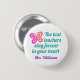 Fin anpassningsbar-knapp med din favoritlärares namn i lila under en söt rosa-fjäril. Uttryck tack och uppskattning med inspirerande citat "de bästa lärarna stannar för alltid i ditt hjärta" i tealen. Cute-gåva till en förskola eller elementär lärare som gillar fjärilar.