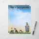 A colorful sky stationery with some butterflies, cats, a baby raccoon, a mailbox and a dragonfly on the front. On the back more cats, and bees.