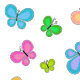 Fun multicolor folk art style butterflies fly over this sweet blue and white stripe background.