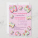 Söt små fjärilar av rosa, grönt och orange flyger glatt omkring på detta söta födelsedagsfest inbjudan.