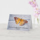 Mitt originalfoto av en Bukt-Fritillary-fjäril med liten skada på vingar, som vilar på en vättad träbänk, visas på detta styrkort. En bibel vers från Psalm 119:50 finns på framsidan. Insidan är tom för dina personliga anteckningar. Detta är en uppmuntrande maning för att lita på och bygga upp tron och för att uppmuntra någon som kanske har det svårt. Att matcha bibelskript till mitt fotografiska bilder är en glädje för och min förhoppning är att de även för med sig dig och andra glädje. Du kan också lägga till mer av din egen text som du vill!