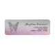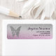 Elegant, vismisk och drömmande returadressetikett med bakgrunden för fjäril rosa lila och silver glitter. Perfekt för inbjudningar till babyskor.